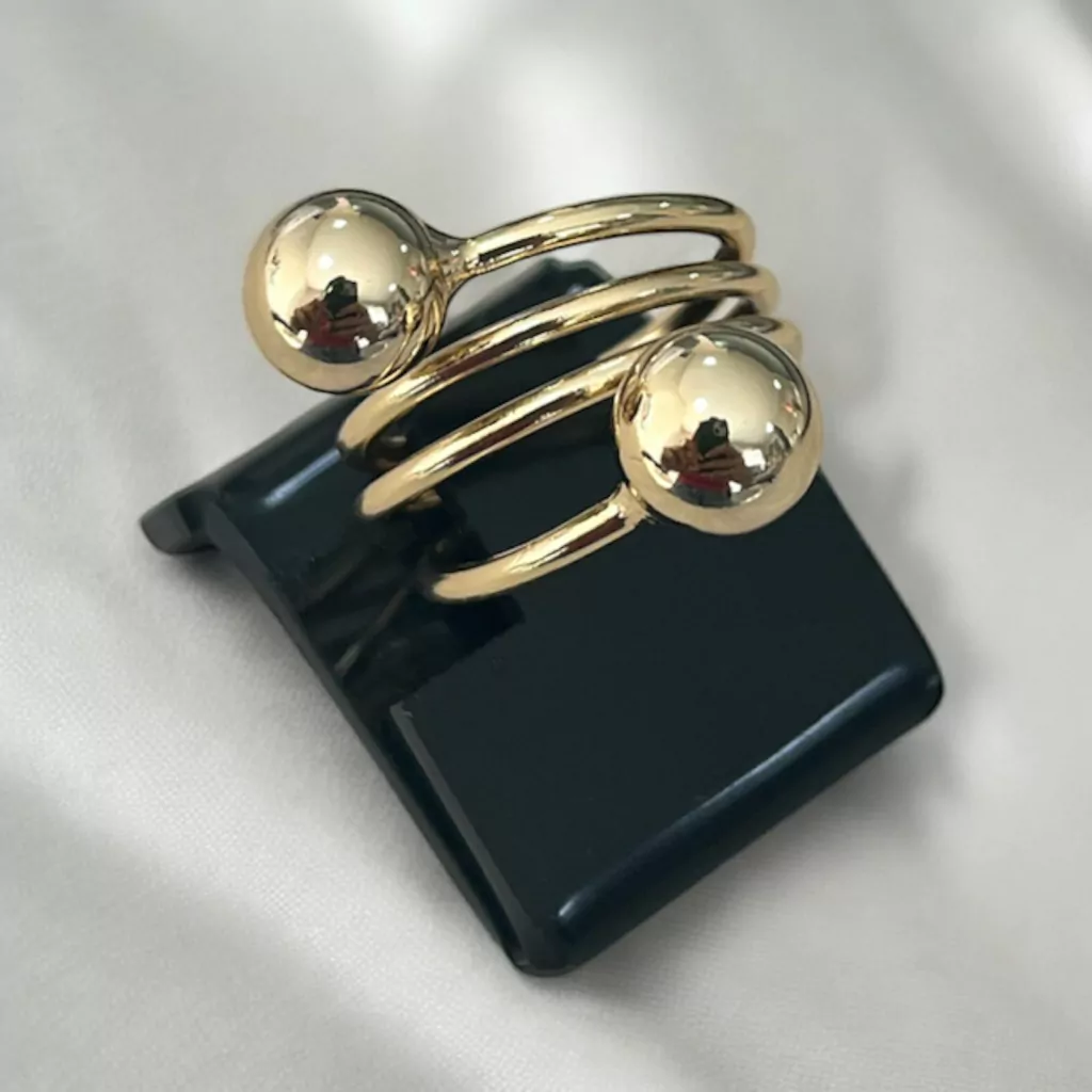 O produto conta com um anel regulável com quatro fios com bolinhas nas extremidades.
