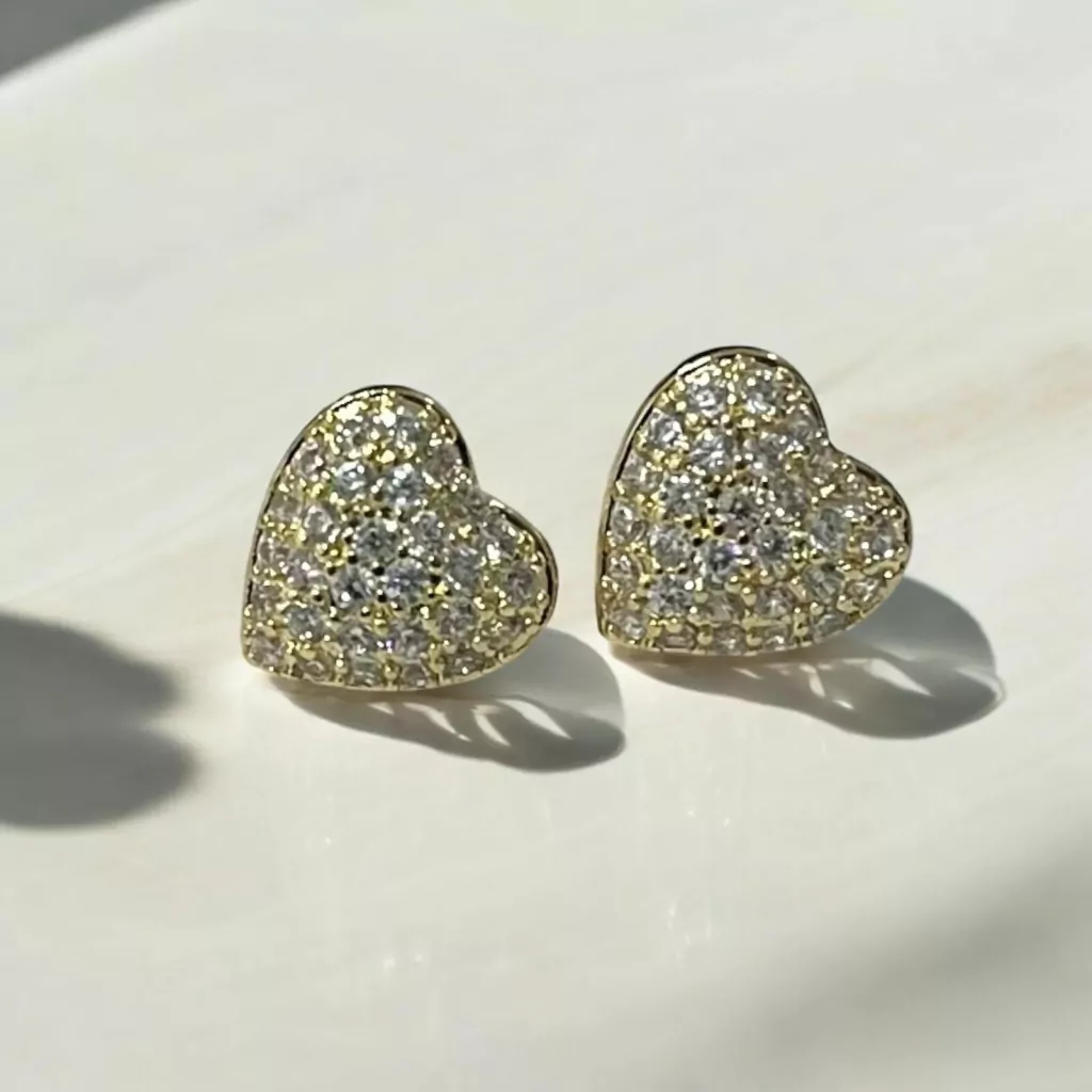 O produto conta com um par de brinco de em formato de coração 10mm cravejado com microzircônias.