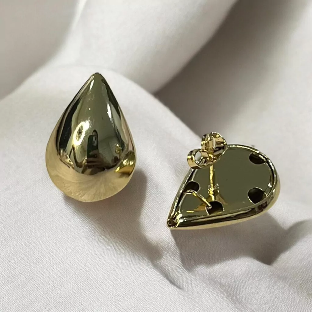 O produto conta com um brinco de pino em formato de gota e reto atrás tamanho médio.