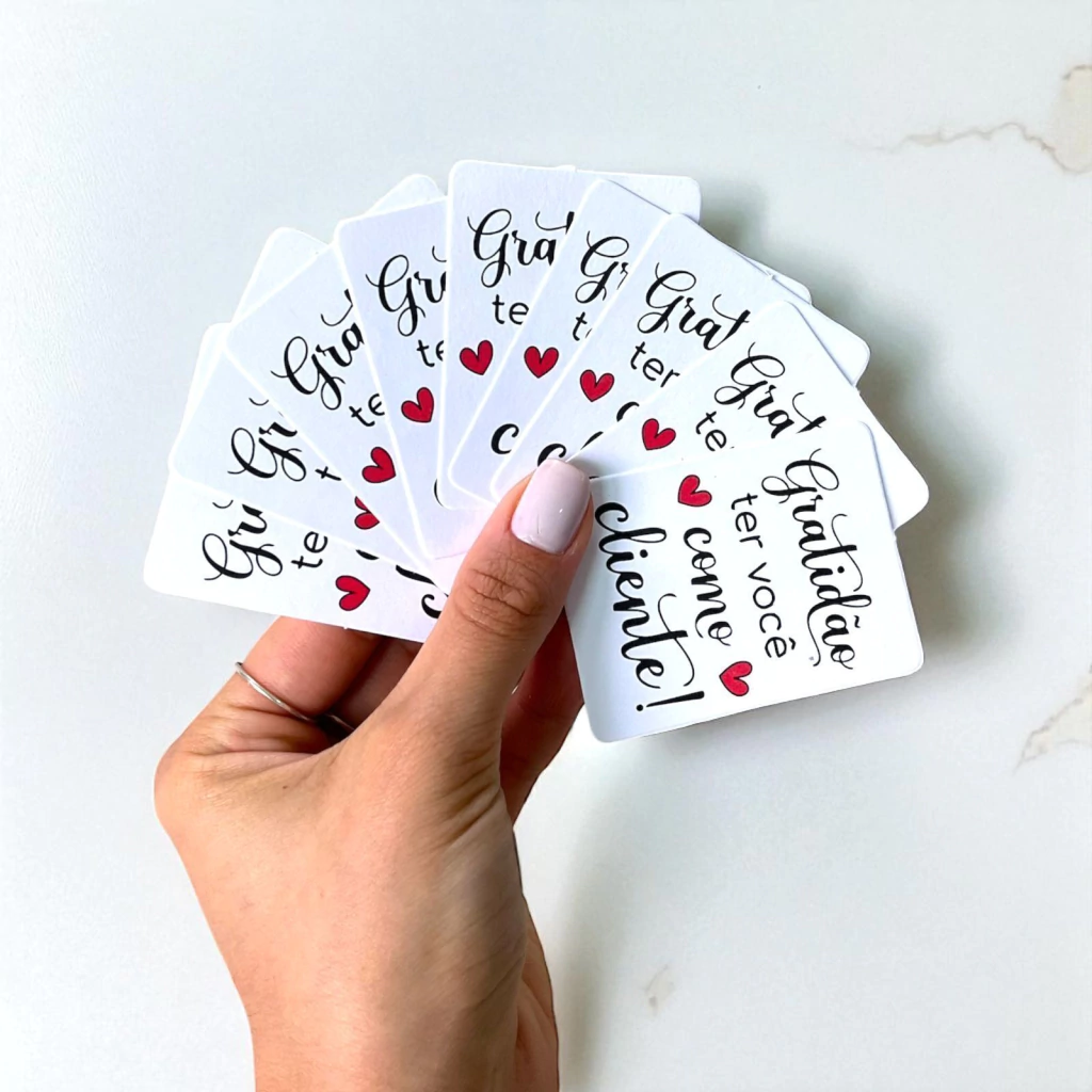 Este cartão de agradecimento é ideal para acompanhar suas vendas, demonstrando cuidado e valorizando ainda mais a experiência de compra. Fabricado em material resistente e com impressão de alta qualidade, ele transmite profissionalismo e proximidade com quem recebe.