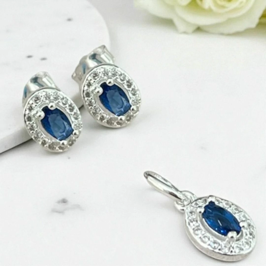 O produto conta com um conjunto (brinco e pingente) em formato oval com microzircônias cravejadas.