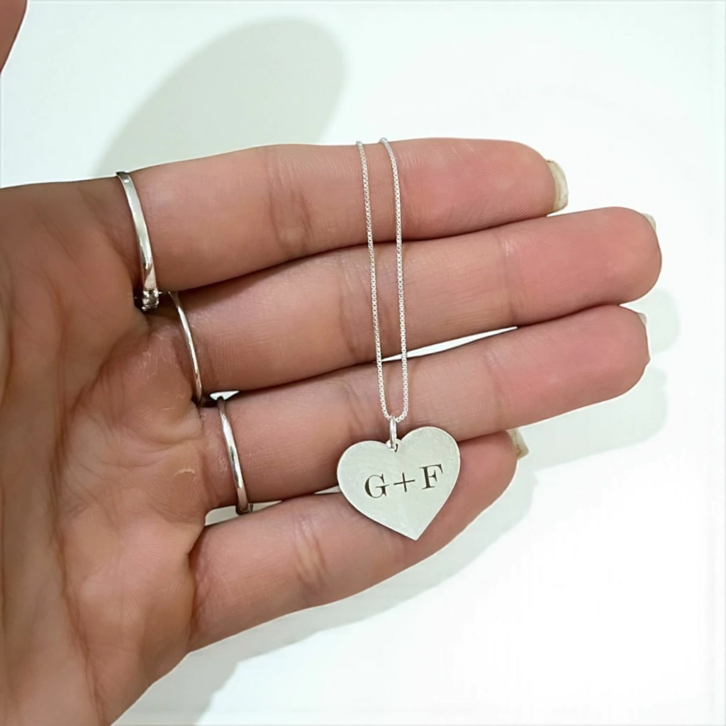 O produto conta com um pingente de plaquinha com um coração G com a possibilidade de ser personalizado na frente e no verso com o texto desejado!