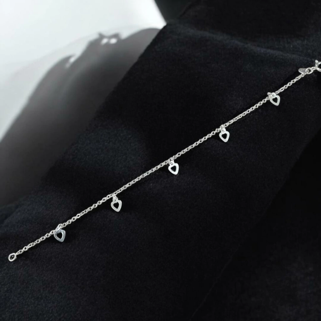 O produto conta com uma pulseira feita na corrente elo português com coração.