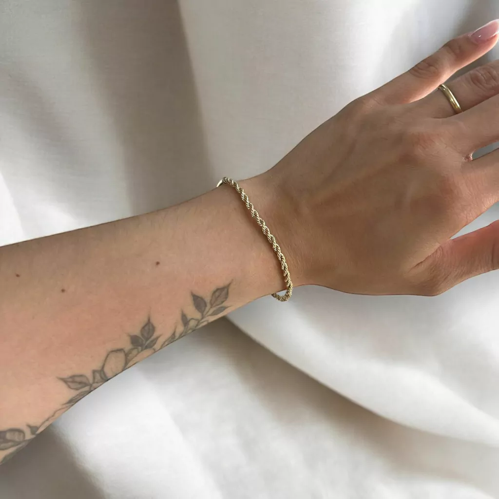 O produto conta com uma pulseira cordão baiano com 3mm de espessura.