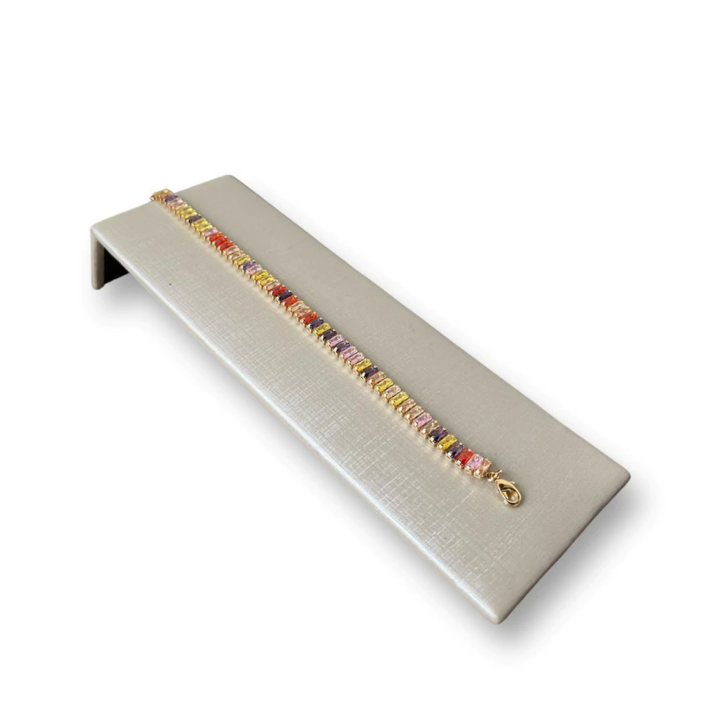Modelo: Pulseira Riviera com Zirconia colorida quadrada.